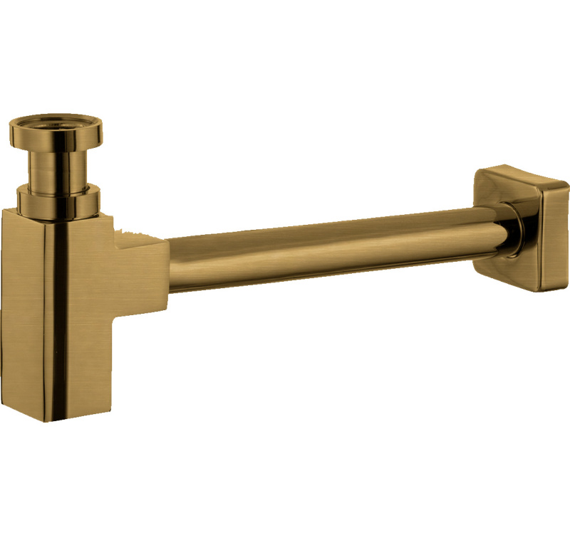 Sifão quadrado para cuba de lavatório. Compatível para válvulas com rosca de 1 1/4. Acabamento Dourado Escovado [37133]